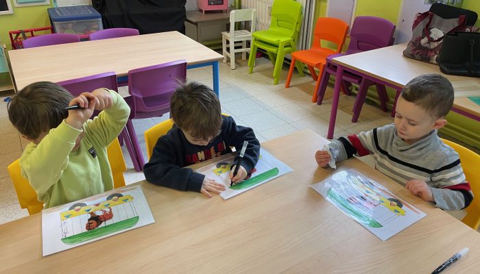 C’est l’hiver ! Illustration de notre chanson chez les Lapins et les Ecureuils et réalisation d’un panneau collectif chez les Chats et les coccinelles